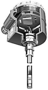 Specifications Sensing Element: Silicon-based polymer, capacitance principle, IC electronics.RH Range: 0 to 100%. RH Accuracy: ±2% in the range of 0% to 90% ±3% in the range of 90% to 100%. Dew Point Range: -15°C to +85°C. (+5°F to +185°F). Dew Point Accuracy: Better than ±1°C (±1.8°F) if T>30°C. (86°F) and RH>40%, T<30°C (86°F) and RH>30%. Repeatability: ±1°C (±1.8°F) Operating Temperature Range: -15°C to +85°C (+5°F to +185°F); temp. signal available with second loop. Temperature Accuracy: 0.5°C (±0.9°F). Absolute Humidity Range: 1 to 350 g/m3. Mixing Ratio Range: 1 to 830 g/kg. Maximum Operating Pressure: 250 psia (17 bar). Outputs: Loop current 4 to 20 mA, 16 μA resolution Optional output for temperature. Electronics: Microprocessor controlled. EMI/RFI Protection: Meets IEC 801-1 through 6. Moisture Units: % RH, dew point temperature in °F or °C, absolute humidity in g/m3, or mixing ratio in g/kg, hardware selectable. Power Supply: 24 V DC nominal, 12 to 32 V DC range, or tolerance +8 V DC to -15 V DC. Protection: NEMA 4X (IP 66). Probe Tube: 316 SS, 1/2" (12.7mm) diameter, insertion length 3.0" (75mm) to 5.9"(150mm), adjustable. Typical Probe Mounting: 1/2" tube x 1/2" MNPT or 1/2" tube x G. 1/2 compression fitting. Weight: 4.4 lbs (2 kg).
